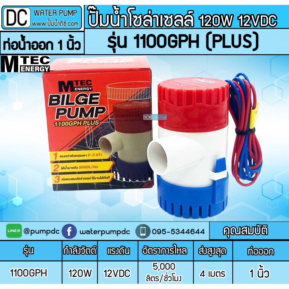 ปั๊มน้ำDC 12V 120W ยี่ห้อMTEC รุ่น 1100GPH Plus