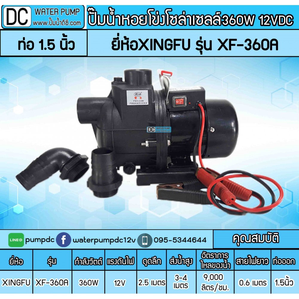 ปั๊มน้ำDC 360W 12V รุ่น XF-360A สามารถใช้งานได้ทั่วไปอเนกประสงค์สำหรับด้านการเกษตรท่านที่ต้องการสูบน้ำที่ได้ปริมาณน้ำครั้งละมากๆเครื่องนี้เหมาะสมเลยทีเดียวเพราะมีขนาดท่อปล่อยน้ำ 1 นิ้วครึ่งสูบได้ปริมาณครั้งละมากๆสูบน้ำเข้าแปลงผักเข้าสวนไร่นาแม้ในที่ที่ไม่มีกระแสไฟฟ้าเข้าถึงก็ใช้งานได้หรือจะใช้ในฟาร์มในคอกปศุสัตว์ก็ดีชำระล้างคอกสัตว์หรืออ่างน้ำให้สัตว์ประหยัดค่าใช้จ่ายด้านต้นทุนค่าไฟฟ้าค่าน้ำมันที่เครื่องสูบน้ำบางชนิดต้องใช้น้ำมันเป็นเชื้อเพลิงโดยเครื่องนี้จะใช้พลังงานจากแบตเตอรี่รถยนต์ทั่วไปหรือแผงโซล่าเซลพลังงานไฟฟ้าจากแสงอาทิตย์ที่แรงดันไฟฟ้าเพียง12V ปลอดภัยจากไฟฟ้าดูด ไฟฟ้ารั่ว ไฟฟ้าช๊อต ทั้งคนและสัตว์แน่นอน หรือในด้านบ้านพักอาศัยทั่วไปโรงงาน โรงเรือน โรงแรม โรงเรียนต่างๆ ก็นำไปใช้ประโยชน์ได้หลากหลาย ไม่ว่าจะเป็นสูบน้ำ ถ่ายน้ำเข้าถังน้ำ แท้งค์น้ำ โอ่งหรืออ่างเก็บน้ำ เพื่อเก็บน้ำไว้ใช้ประโยชน์ต่อไป เป็นต้น