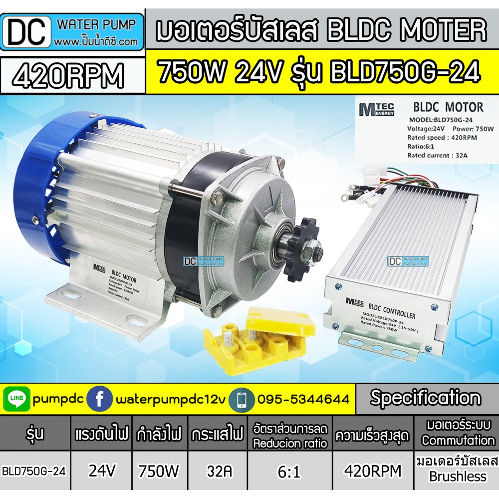 มอเตอร์บัสเลส เกียร์ทด 750W 24V ชนิดมีทดเกียร์ ซึ่งจะมีความเร็วในการหมุนประมาณ 420รอบ/นาที มีแรงบิดสูงกำลังฉุดค่อนข้างสูง กล่องคอนโทรลรองรับแรงดันไฟdc 15-50V