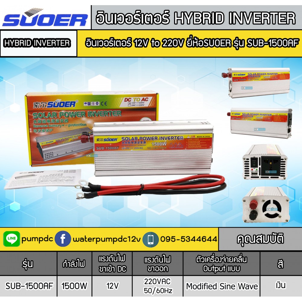 อินเวอร์เตอร์ SUOER รุ่น SUB-1500AF 12V to 220V